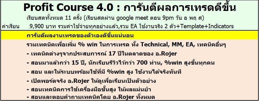 คอร์สเรียน Forex มืออาชีพ Course Profit 4.0 : มีรายละเอียด ดังนี้